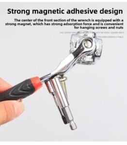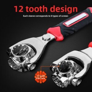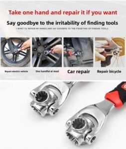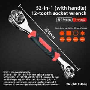 This is a versatile 52-in-1 socket steel wrench with a 360-degree rotating head, which can flexibly adapt to different angle operation scenarios. Universal rubber handle, comfortable to hold and non-slip, can cope with a variety of maintenance, assembly and other work, with multi-specification adaptation, one wrench can solve a variety of bolts, nut disassembly and assembly needs, strong practicability, is a powerful tool for daily maintenance and professional operation.