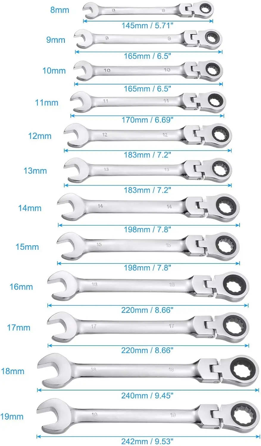 Custom Industrial Inch Double-Ended CR-V Combination Wrench Set Metric Torque Wrench Set Hand Tools Ratchet Wrench