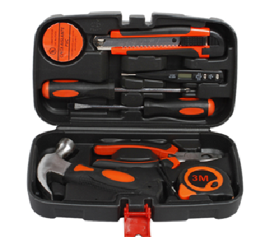 Product model: 9 PCS Components: 1pc -Insulated tape , 1pc-Utility knife 1pc- Digital electrical test pen , 1pc -6*100 Cross screwdriver , 1pc- 6*100 Straight Screwdriver, 1pc-Cutting pliers of 6” , 1pc -Claw hammer , 1pc- 3m measuring tape Plastic box material: PE Accessory material: 45 # carbon steel Packing quantity : 20 PCS/CTN Gross weigh: 26 KGS Net weight: 25.3 KGS Carton size: 54*39.5*33CM